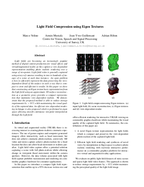 TITLE = "Light Field Compression using Eigen Textures",